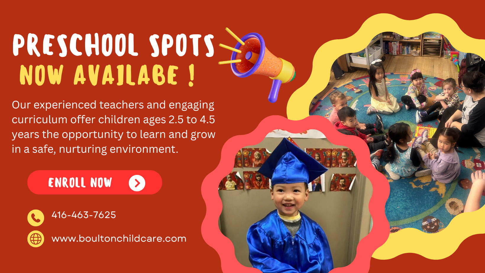 The Boulton Avenue Child Care Centre is a not-for-profit organization that provides quality daycare to families in the diverse Riverdale community. With five bright and cheerful program rooms, a kitchen, and a unique and secure roof-top playground, the Centre provides well-rounded programs for children. Learn more about the Boulton Family.